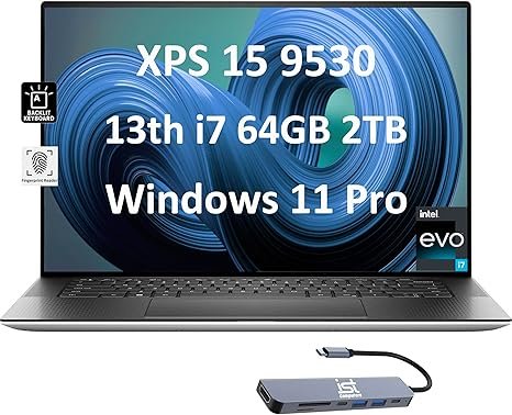 Dell XPS 15 9530 Business Laptop (15.6″ FHD+, Intel 10-Core i7-13620H (Beat i9-12900H), 64GB DDR5 RAM, 2TB SSD), Backlit, Fingerprint, Thunderbolt 4, Wi-Fi 6, IST HUB, Win 11 Pro w/AI Copilot, Silver